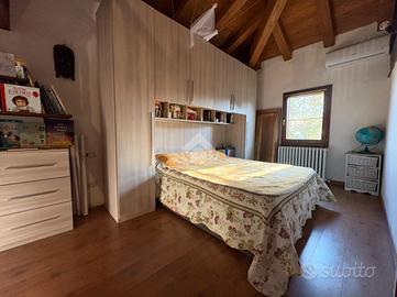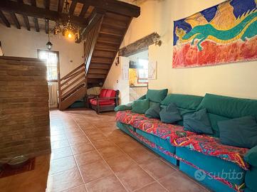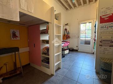 Dalla camera da letto con un ulteriore scala in legno si accede ad un sottotetto finito con una ringhiera che si affaccia sulla zona notte da usare come ripostiglio o cantina.