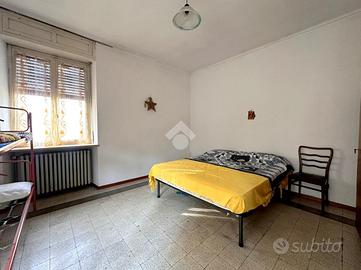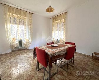 Casa semindipendente situata in una zona strategica, comoda a tutti i servizi e alle scuole. L'immobile si sviluppa su due livelli e dispone di un cortile privato. Al piano terra, l'ingresso si apre su un disimpegno che separa un ampio soggiorno luminoso dalla cucina abitabile, sullo stesso piano vi è il bagno di servizio. Al piano superiore, la zona notte è collegata tramite una scala interna in legno e comprende due camere da letto, di cui una con accesso al balcone. Dal corridoio si accede anche al sottotetto, sfruttabile per eventuali necessità di spazio aggiuntivo. L'immobile è dotato internamente di accesso alle cantine, offrendo un ulteriore spazio utile per ripostiglio o deposito. L'impianto di riscaldamento è a gas metano, gli infissi sono in legno.