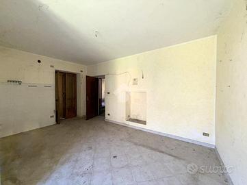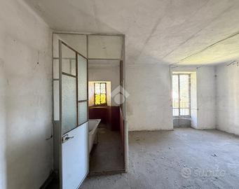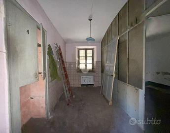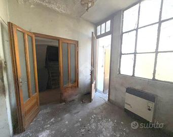 Casa semindipendente situata in centro paese, in posizione strategica e comoda a tutti i servizi. L'immobile è composto da tre appartamenti distinti, si sviluppa su più livelli collegati da un valo scala interno comune. Al piano terra, il primo appartamento è costituito da un unico ambiente adibito a cucina. Sullo stesso livello, ma con accesso esterno è presente anche un locale di sgombero e un bagno. Al piano primo, il secondo appartamento dispone di due camere da letto, entrambe con accesso a balconi con esposizioni differenti, due bagni e una cucina abitabile. Al piano secondo, il terzo appartamento è composto da due camere, separate da un disimpegno, di cui una con affaccio balcone, oltre a un bagno. A completare la proprietà vi sono due cantine e un ripostiglio. L'immobile attualmente è privo di riscaldamento ed è fedele allo stato originario e necessita di ristrutturazione.