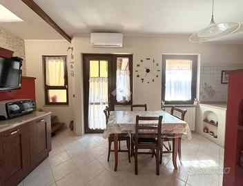 Casa Semindipendente con cortile e giardino esclusivo, situata in zona tranquilla in frazione foresto, nel comune di Bussoleno. L'immobile si sviluppa su più livelli. Al piano terreno l'ingresso apre sul soggiorno con stufa a pellet, adiacente la cucina abitabile con affaccio sul balcone verandato. Sullo stesso piano troviamo due cemere da letto di cui una matrimoniale, un bagno finestrato dotato di box doccia e vasca, oltre ad un ripostiglio. Tramite scala interna si accede al piano superiore che apre su un disimpegno dotato di stufa a pellet che divide i tre locali sototetto dal bagno finestrato dotato di box doccia e attacchi della lavatrice. Attraverso il balcone verandato, dotato di scala si accede al piano interrato composto da tre cantine una di queste attualmente adibite a tavernetta attrezzata, un locale sgombero e un ripostiglio. Sullo stesso piano è presente un'accesso per l'esterno sul cortile retrostante. L'impianto di riscaldamento è alimentato con caldaia a metano.