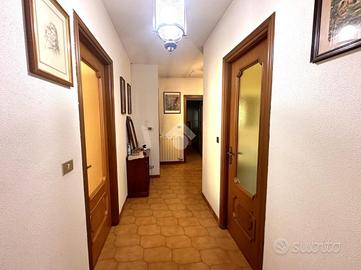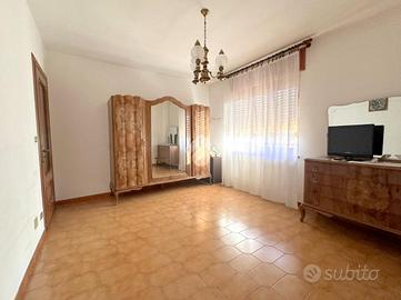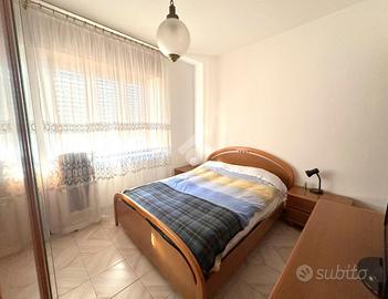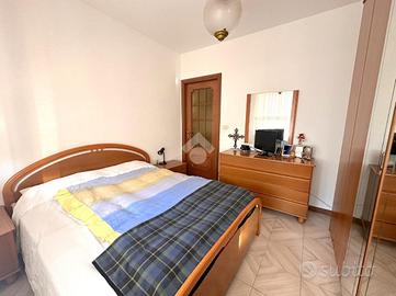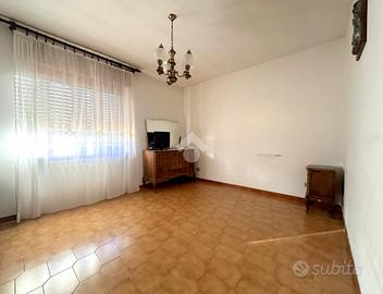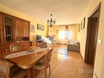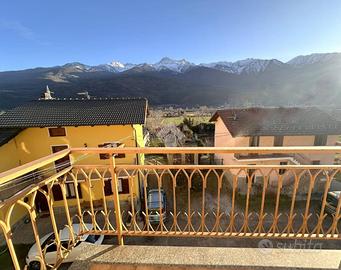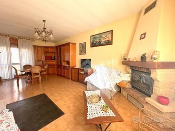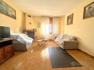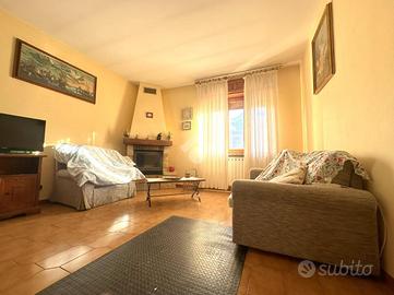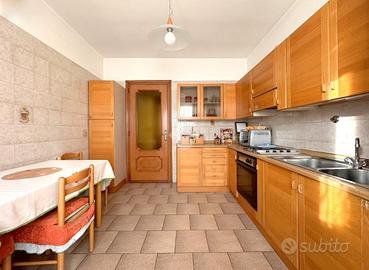 Al primo piano l'appartamento è di generosa metratura, è composto da quattro locali di cui due camere da letto, una cucina con annesso il balcone, un'ampio soggiorno con camino a legna con accesso sul balcone. Il bagno è finestrato con box doccia e attacchi per la lavatrice.