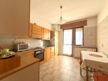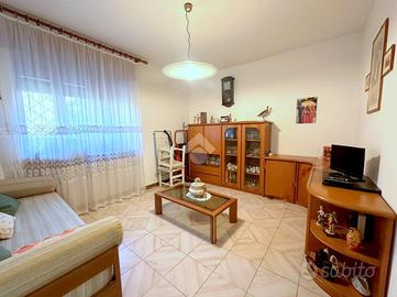Al piano terra è presente un trilocale funzionale con ampia cucina con annesso il balcone, un soggiorno luminoso, una camera da letto e un bagno finestrato dotato di attacchi per la lavatrice.