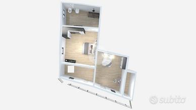 Tramite comoda scala esterna si accede al primo piano completamente ristrutturato nel 2022 e caratterizzato dall' ingresso su soggiorno con cucina a vista, camera matrimoniale con sfogo sul balcone, disimpegno e bagno finestrato dotato di box doccia.