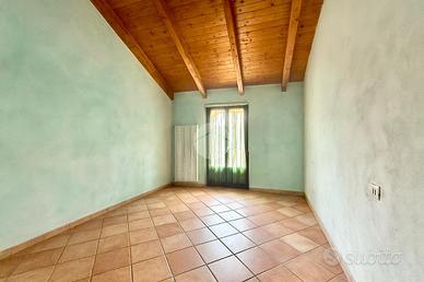 Attualmente l'immobile presenta al piano terra un accogliente soggiorno, una cameretta e accesso interno diretto al box auto doppio. Tramite comoda scala interna si accede al primo piano, dove troviamo una ampia e luminosa zona giorno con cucina a vista, una camera matrimoniale e bagno finestrato dotato di box doccia.