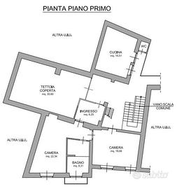 Al piano terra si sviluppano i locali accessori: due negozi, laboratorio, magazzino e tettoia ma all'occorrenza è possibile adibire parte dei locali a box auto. Con scala esterna si accede al primo piano dove troviamo un alloggio con tettoia coperta che volendo potrebbe essere recuperata ai fini abitativi. La porta d'ingresso si apre sul disimpegno, adiacente la cucina, due camere da letto e il bagno ampio ma, essendo da ristrutturare, si possono ridefinire gli spazi per sfruttare al meglio la cubatura.