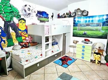 Il piano superiore è composto di quattro camere da letto di cui una con bagno interno, due comunicanti fra loro, e un bagno spearato, ed è servito da un terrazzo e da un balcone.