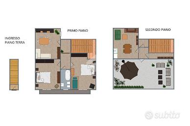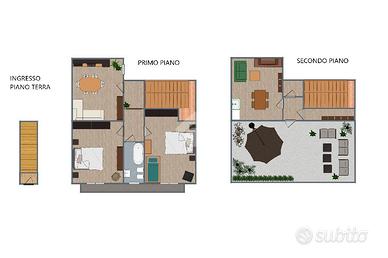 La casa si sviluppa tra il primo piano e il piano secondo, con ingresso indipendente. Tutti gli ambienti principali della casa si trovano al primo piano, rendendo la casa una soluzione ideale per chi non ama avere dislivelli tra la zona giorno e la zona notte.