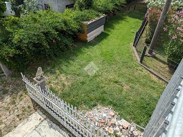 Attraverso il cortile comune a sole due unità raggiungiamo lo spazio esterno esclusivo di complessivi 800 mq circa, adibiti a cortile e giardino, all'interno del quale vi è anche un piccolo basso servizio utilizzabile come ricovero attrezzi.