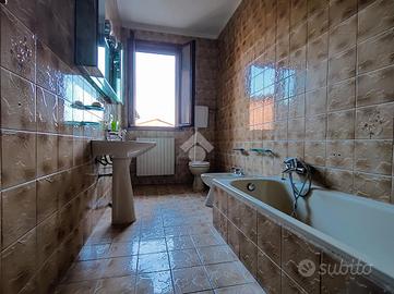 Al piano terra troviamo la prima unità abitativa composta da ingresso, soggiorno, cucina abitabile, una camera matrimoniale, una camera doppia e un bagno finestrato con vasca.