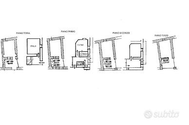 L'immobile, di circa 120 mq, è posto su quattro livelli: al piano terra, al piano primo, al piano secondo, al piano terzo.
