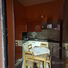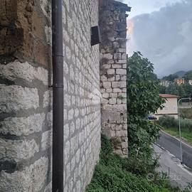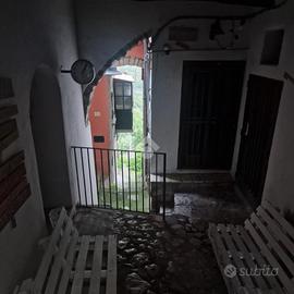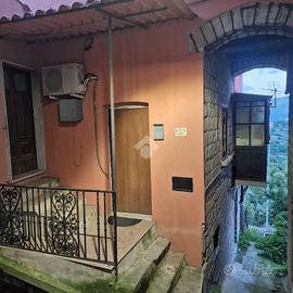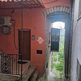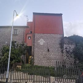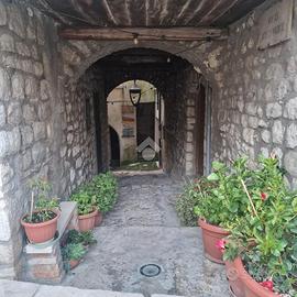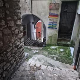 da tre vani più accessori al piano rialzato.Al piano terra dispone di due depositi, i quali un domani potranno essere ristrutturati e renderli comunicanti con l appartamento in modo che la casa sia più grande e spaziosa. Ubicata nel centro storico a ridosso di un arco in pietra molto caratteriscico con delle scale comunali e cortile.