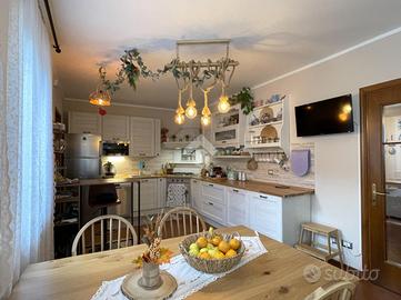 L'abitazione si presenta accogliente e luminosa fin dal primo ingresso, dove un ampio soggiorno con scala a vista crea un ambiente caldo e conviviale, perfetto per vivere momenti di relax in famiglia. Proseguendo, si accede alla cucina separata e abitabile, spaziosa e funzionale, ideale per chi ama cucinare e trascorrere piacevoli serate in compagnia. A completare il piano terra troviamo una comoda lavanderia con accesso diretto all'autorimessa.