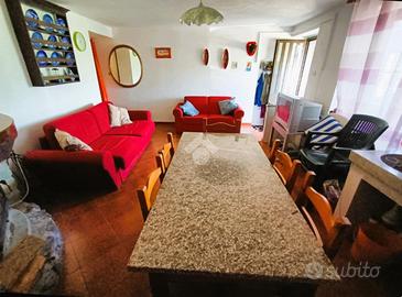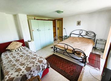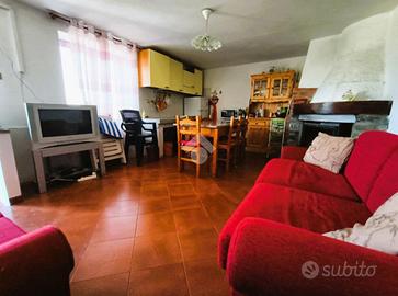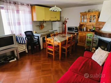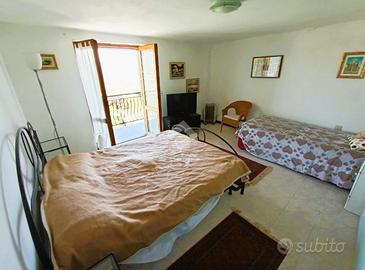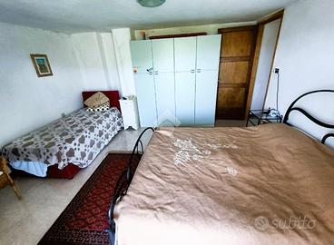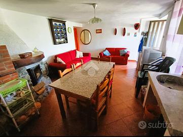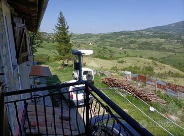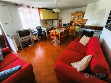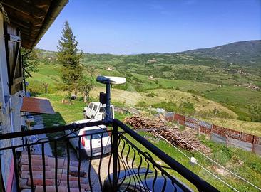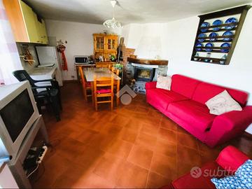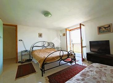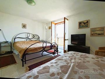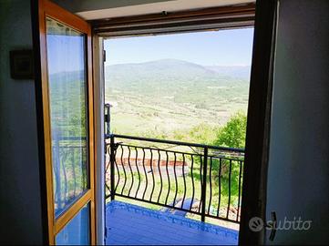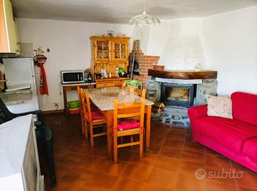 al piano terra si trova l'ingresso in un ampio soggiorno con angolo cottura, corredato da un camino ed un forno a legna , perfetti per cene in compagnia di amici e parenti, mentre al piano superiore una scala interna conduce al bagno con doccia e finestra ed alla camera da letto matrimoniale con balcone dalla quale si può ammirare un'IMPAGABILE VISTA sulla vallata sottostante .