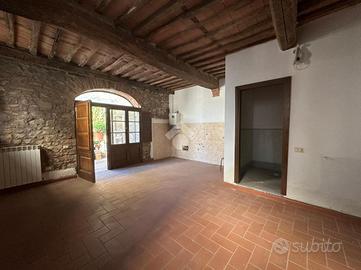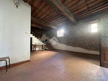 Al piano terra ci accoglie ampio soggiorno con angolo cottura, ripostiglio e bagno cieco.