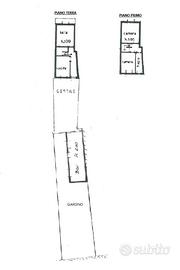 Al piano terra troviamo ingresso che conduce alla zona giorno e la cucina identificati in due ambienti separati; tramite scala interna, al piano primo troviamo due camere da letto e bagno accessoriato di vasca.