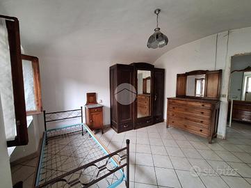 Al piano terra, la cucina abitabile si apre su un soggiorno accogliente, completato da un pratico bagno di servizio. Salendo al primo piano, si trovano due ampie camere matrimoniali e un bagno con doccia, ideale per il comfort quotidiano.
