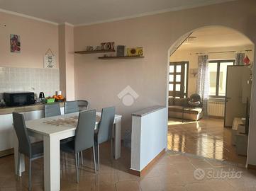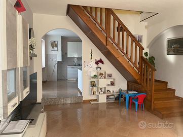 L'ubicazione della casa è ideale per raggiungere comodamente il centro del paese. La soluzione è inserita in un piccolo contesto di poche famiglie all'interno di una corte ben tenuta. In linea con una delle caratteristiche tipiche dei contesti di questi anni, gode di ambienti spaziosi e grazie alla sua disposizione risulta ideale anche per due famiglie. Il piano terra infatti vede la presenza di un bilocale formato da soggiorno con cottura, valorizzato dalla presenza di un camino, camera, bagno e piccola area esterna privata. L'appartamento al piano primo, raggiungibile da una scala esterna, è disposto su due livelli. Al piano primo trovano sistemazione i locali della zona giorno valorizzati da un comodo terrazzo, bagno padronale ed una camera da letto. La zona notte al piano secondo è costituita da tre locali e dal bagno di servizio. L'appartamento risulta essere molto luminoso grazie alla favorevole esposizione, termoautonomo e privo di spese di gestione. Box e sottoscala ad uso cantina inclusi nel prezzo.