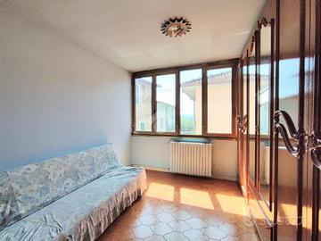 La casa è semindipendente e dotata di doppio ingresso. Un accesso da' direttamente sul soggiorno completo di camino; l'altro ha accesso da un pratico portico coperto da utilizzare anche come ricovero per l'auto, da qui si può comodamente accedere alla cucina con il tinello. Sempre su questo piano vi è la centrale termica, la legnaia oltre ad un wc esterno. Il primo piano è interamente adibito alla zona notte ed è suddiviso in tre spaziose camere da letto, la luminosa veranda chiusa con stufa a pellets è ideale come angolo relax o stanza studio, il bagno è con la vasca e un ripostiglio. Al piano interrato vi è la cantina.
