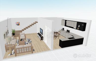 Al piano terra troverai la cucina abitabile illuminata dalla luce naturale che entra dalle ampie finestre. Successivamente vi è il soggiorno e il servizio. Fornendo uno spazio flessibile e funzionale.