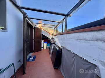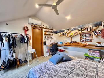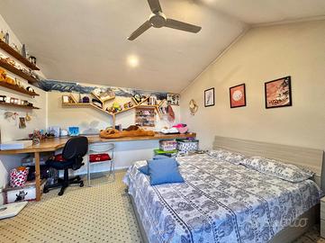 Al piano superiore troviamo un sottotetto abitabile, attualmente adibito a camera matrimoniale, dotato di terrazza a tasca. Completa il livello un bagno finestrato con vasca e una soffitta utilizzabile come spazio di servizio o ripostiglio.