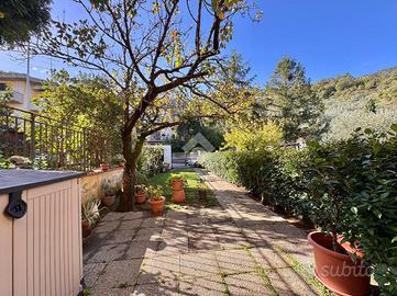 All'esterno è presente un giardino privato, ideale per realizzare una zona barbecue o relax, perfetto per godere della tranquillità e della vista sulle colline di Bacchereto.