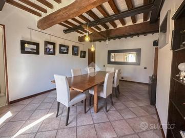 Disposta su tre livelli con una superficie calpestabile di oltre 250 mq., l'immobile si presenta in buonissimo stato conservativo pronta per essere abitata, in virtù di una ristrutturazione avvenuta nei primi anni 2000 che ha interessato esternamente, il rifacimento del tetto e il ritinteggio delle facciate, e internamente un riammodernamento generale di pavimenti, spazi e impianti che ne hanno migliorato la funzionalità e l'estetica.
