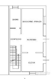 Disposta su due piani, si compone di ingresso nell'ampio soggiorno di oltre 30 mq, cucina abitabile separata, bagno e scala interna.