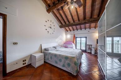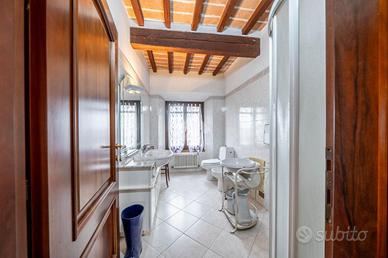 La soluzione può eventualmente essere trasformata in una casa bifamiliare ed attualmente presenta un soggiorno al piano terra con angolo cottura, una camera ed un bagno ed ai due piani di sopra vi sono rispettivamente 3 camere ed un bagno (per un totale di 6 camere e 2 bagni ai piani superiori).