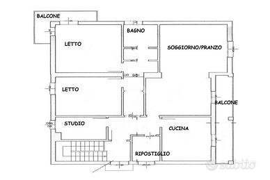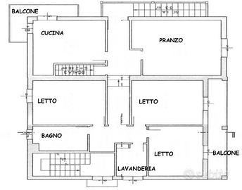 L'appartamento si sviluppa sull'intero primo piano, dove troviamo la sala, cucina abitabile, 3 camere da letto, bagno, ripostiglio e 2 balconi. La scala interna porta al piano terra dove troviamo un garage doppio, un bagno ed una taverna.