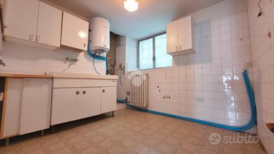I locali dedicati alla zona giorno, come la cucina abitabile e il soggiorno, sono entrambi muniti di una portafinestra che collega l'area cortilizia. I locali appena menzionati sono ulteriormente separati da un disimpegno comunicante con i vani cantina, locale lavanderia e un bagno accessoriato di box doccia.