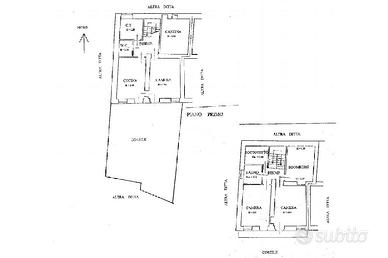 Il piano superiore è raggiungibile tramite scala interna, dove si raggruppa la zona notte. Tale livello comprende due camere da letto di generosa metratura con balcone comunicante, un locale sgombero ideale per ricreare uno studio, un locale sottotetto e un bagno con vasca.
