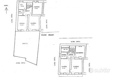 Il piano superiore è raggiungibile tramite scala interna, dove si raggruppa la zona notte. Tale livello comprende due camere da letto di generosa metratura con balcone comunicante, un locale sgombero ideale per ricreare uno studio, un locale sottotetto e un bagno con vasca.
