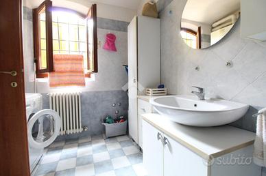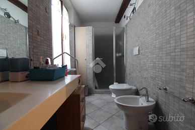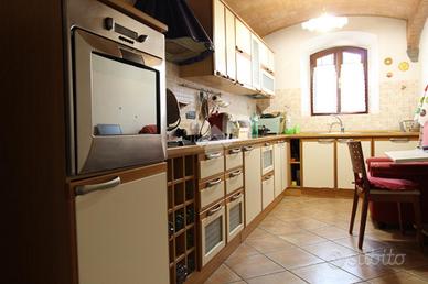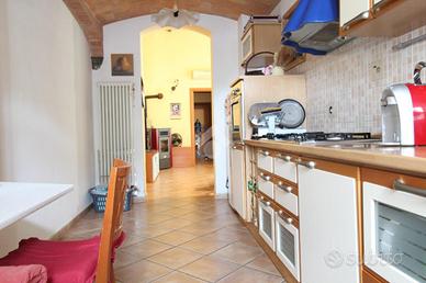 CASALGRANDE ALTO: Rif. 146 In zona tranquilla e rialzata, porzione di casa, in parte terra cielo ristrutturata nel 2005, composta da: piano terra: appartamento con ingresso indipendente di 112 mq. con soggiorno, cucina abitabile, camera matrimoniale, due camere singole e due bagni (uno dei quali dentro a una camera singola). Piano primo attualmente con ingresso su scala condominiale di altre due unità, di 70 mq. con possibilità di aggiungere un piano/soppalco allo stato grezzo e creare un' ulteriore appartamento o ampliamento di quello sottostante. Cortile di 544 mq. in proprietà per i 2/3 e con diritto di passaggio, chiuso da cancello elettrico, con posti auto coperti, area verde, con pozzo per innaffiare.
