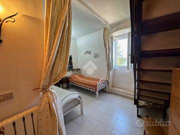 al piano secondo un'ampia camera matrimoniale con terrazzino panoramico, bagno e una zona di passaggio che può essere adibita anche a studio;