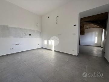 L'immobile è disposto su due livelli. Al piano terra troviamo la zona giorno, con cucina abitabile e un ampio soggiorno caratterizzato dalle volte in mattoni a vista, e da un bagno finestrato.