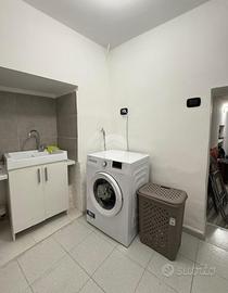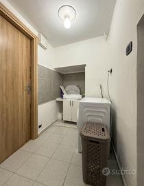L'ingresso al piano terreno conduce a un disimpegno attrezzato con armadiature, alla zona lavanderia, al locale sottoscala e a una cantina comoda e funzionale.