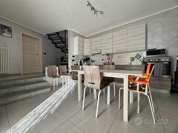 In posizione centrale, con ottima esposizione e vista panoramica sul Castello di Rivoli, semindipendente ristrutturata totalmente di recente cosi composta da: al piano terra ingresso su soggiorno di generose dimensioni, cucina abitabile, una camera da letto, una cameretta e un bagno e balcone; al piano superiore, tramite scala interna, un' ampia camera da letto col bagno e una parte di sottotetto utilizzabile come deposito. Al piano seminterrato un ampio locale rifinito sfruttabile come taverna o locale per eventuali hobby. Completa la proprieta un cortile privato di circa 70 mq, due posti auto e un orto/giardino adiacente l' abitazione di circa 500 mq. OTTIME CONDIZIONI GENERALI. NESSUNA SPESA CONDOMINIALE
