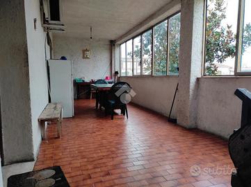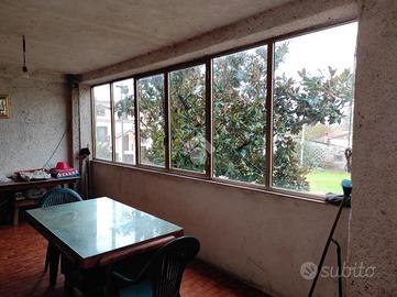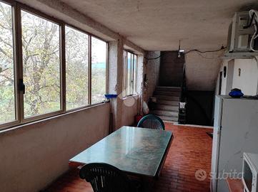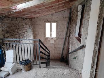 Tramite una scala interna, in cemento armato da rifinire, saliamo al piano primo dove è disposta la zona giorno, composta da una veranda, un piccolo soggiorno con camino, una cucina abitabile ed una sala da pranzo.