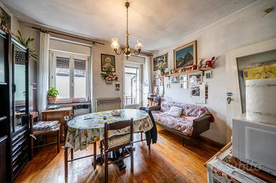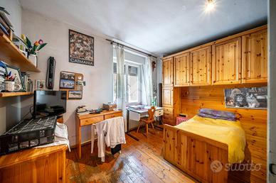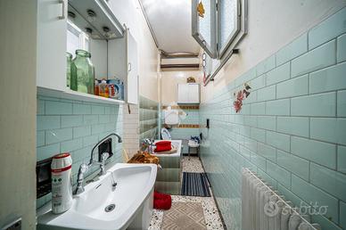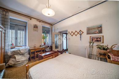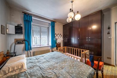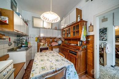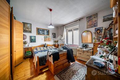 * Il primo piano ospita un ampio quadrilocale composto da ingresso, soggiorno luminoso, sala da pranzo con accesso al balcone, cucinino separato, bagno cieco, una camera matrimoniale e una doppia. Zona giorno esposta a Sud, zona notte a Nord.