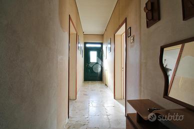 Castelfidardo - Via Martiri della Libertà In posizione tranquilla e riservata proponiamo in vendita soluzione al piano terra in contesto semindipendente, ideale per chi è alla ricerca di indipendenza e spazi esterni privati, senza spese di condominio. L'abitazione è libera su quattro lati e dotata di doppio accesso autonomo, caratteristiche che garantiscono privacy e grande versatilità d'uso. A valorizzare la proprietà troviamo una corte esterna perimetrale privata, dove si sviluppano una zona pavimentata, perfetta per pranzi e momenti conviviali all'aperto, e una parte di giardino, ideale per chi ama il verde, il relax e il contatto con la natura. All'interno la soluzione si distingue per la sua notevole flessibilità: l'immobile è infatti attualmente organizzato in due appartamenti autonomi, composti rispettivamente da un trilocale e un quadrilocale. Il quadrilocale si sviluppa con una luminosa zona soggiorno-pranzo con cucina a vista, ambiente conviviale e funzionale, affiancato da tre ampie camere da letto e doppi servizi entrambi finestrati, a garanzia di comfort e praticità per tutta la famiglia. Il trilocale è composto da una zona giorno, due camere da letto e un bagno, risultando una soluzione ideale sia come seconda unità abitativa per familiari sia come appartamento da destinare alla locazione. Questa configurazione offre diverse possibilità di utilizzo: -unire le due unità per creare una grande abitazione unica, perfetta per famiglie numerose o per chi desidera ampi spazi abitativi; -mantenere le due soluzioni separate, utilizzandone una come abitazione principale e destinando l'altra a investimento, con la possibilità di metterla a reddito. A completare la proprietà troviamo due garage, ideali sia per la rimessa delle auto sia come spazio di stoccaggio, oltre a un comodo ripostiglio situato nell'area esterna, utile per l'organizzazione degli spazi e per riporre attrezzature o oggetti. È inoltre incluso nella proprietà un lastrico solare di circ