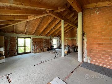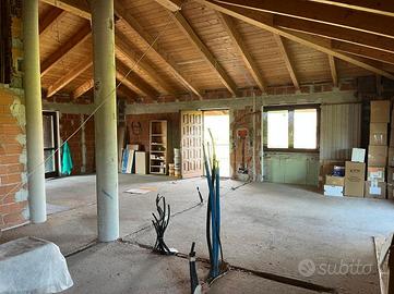 Al piano superiore è presente un ulteriore spazio della stessa metratura dell'alloggio del piano terreno, ad oggi allo stato rustico riadattabile come secondo appartamento, oppure renderlo comunicante con il piano terreno. Qui troviamo un ambiente mansardato con travi a vista. I balconi panoramici, percorrono l'intero perimetro della casa.