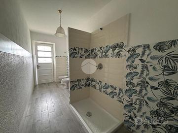 all'ingresso c'è un'ampia cucina abitabile con un disimpegno che porta ad un bagno di servizio,