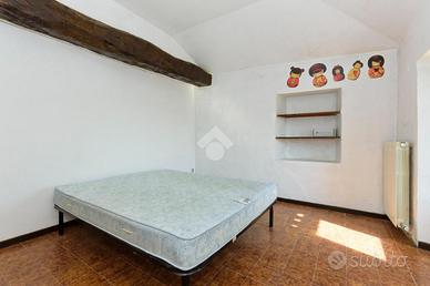 Il fabbricato è stato ristrutturato negli anni 90, ma per renderlo abitabile necessita di una messa in sicurezza di un cedimento strutturale e di una ripassata al tetto. La casa è una frazione di un vecchio cascinale piemontese e si trova in frazione Morialdo di Castelnuovo Don Bosco, vicina alla Basilica di Don Bosco e al centro commerciale Magnone. Il giardino è privato e di circa 70 mq e comprende anche nelle vicinanze un terreno di 600 mq utilizzabile come posti auto o orto. L'ingresso dell'abitazione è al piano rialzato e accede sul soggiorno con angolo cottura. La zona giorno è caratterizzata da un camino a legna. La scala interna in legno conduce alla zona notte. Il piano primo è composto da due camere da letto e da un bagno finestrato e dotato di doccia. La cantina è al piano seminterrato e rende sana l'abitazione. Il riscaldamento è alimentato da una caldaia a GPL e anche da una stufa a pellet. L'esposizione è luminosa in quanto la casa è libera su tre lati. Importanti agevolazioni fiscali sulla ristrutturazione edilizia.