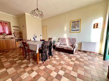 Il piano terra è composto da un'ampia cucina, un bagno finestrato e da una camera che è possibile utilizzare come soggiorno. La scala interna conduce al piano superiore e potrebbe essere indipendente per la seconda unità. E' presente anche un piccolo terrazzo esterno recintato.