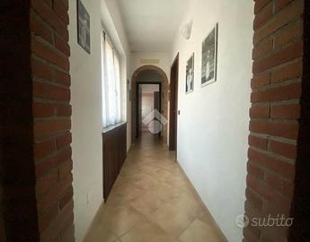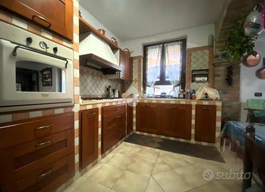 Splendida proprietà in vendita, situata in una posizione strategica vicino a tutti i servizi necessari. Questo immobile si trova a pochi chilometri dall'autostrada, rendendo facile e comodo il raggiungimento di altre destinazioni. La casa si sviluppa su due piani, con un ampio e luminoso spazio living al piano terra. La cucina è in muratura ed il soffitto presenta eleganti archi a volta. L'immobile è dotato di predisposizione per stufa a pellet ed impianto di climatizzazione, garantendo un comfort ottimale in ogni stagione. Il bagno principale è dotato di lavandino doppio e vasca, mentre al piano superiore si trovano tre camere da letto, un secondo bagno con doccia e balconi collegati ad ogni stanza. Una delle camere dispone di scalini che conducono ad un ulteriore locale, attualmente utilizzato come magazzino ma che può essere adattato per diversi utilizzi come una quarta camera, una cabina armadio o uno studio. Completa la proprietà una cantina di pertinenza e uno spazio esterno privato nel retro dell'immobile, accessibile anche tramite carraio. Inoltre, ci sono due tettoie esterne, una delle quali offre vari posti auto ed un rustico, mentre l'altra presenta una zona relax con sedie, tavoli e cucinotto, perfetto soprattutto nella bella stagione, per godersi pranzi e cene all'aria aperta.