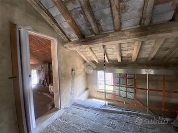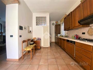 Nelle vicinanze del centro ed a pochi chilometri di distanza dal casello autostradale, proprietà su più livelli con giardino. All'ingresso, il soggiorno di buone dimensioni e la cucina abitabile, sono caratterizzati da finiture in mattoni, la scalinata centrale conduce alla zona notte con le tre camere da letto ed il bagno con doccia; dal piano, è possibile accedere al balcone con la terrazza adiacente. Al piano superiore il sottotetto in mattoni, con la predisposizione degli impianti. Un ulteriore locale al piano terra, ospita la lavanderia con il bagnetto di servizio. In più, una seconda proprietà da ristrutturare di cica 115 mq per ricreare eventualmente una soluzione bifamiliare.