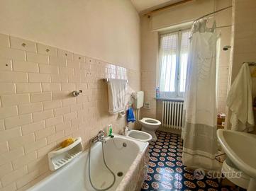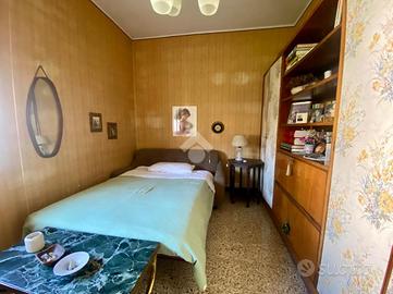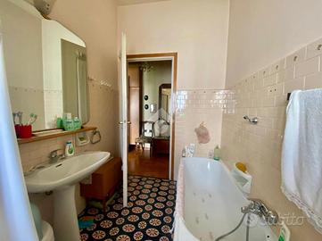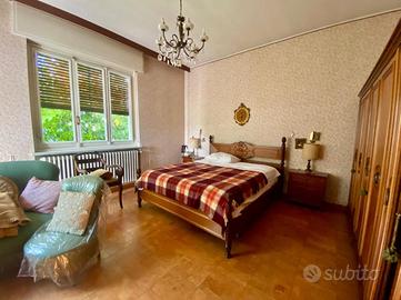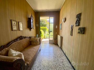 La zona notte comprende una camera matrimoniale, una cameretta e un bagno finestrato dotato sia di vasca che di doccia. Le finiture sono quelle originali dell'epoca di costruzione, con serramenti in legno a vetro singolo. L'impianto di climatizzazione è presente. La casa, pur richiedendo alcuni interventi di ammodernamento, si presta a diventare un'ottima soluzione abitativa per chi cerca indipendenza, spazio esterno e la possibilità di personalizzare gli ambienti secondo il proprio gusto.
