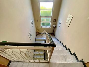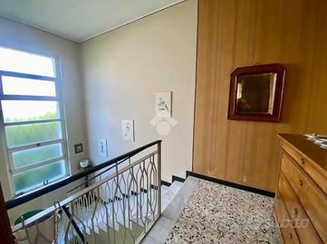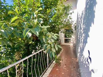 In zona tranquilla e riservata, proponiamo una casa semindipendente dotata di spazio esterno privato di 150 mq e doppio accesso, sia pedonale che carraio. L'immobile si sviluppa su due livelli: al piano terra troviamo un ampio box auto, ideale anche come spazio multifunzionale, con annesso locale caldaia. Salendo al primo piano, si accede all'abitazione vera e propria, composta da un ingresso che introduce alla zona giorno. La cucina è abitabile e affaccia su un comodo terrazzo, perfetto per pranzi all'aperto o momenti di relax. La sala è spaziosa e luminosa, arricchita da un camino funzionante e da un balcone che offre uno sfogo esterno aggiuntivo.