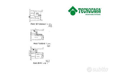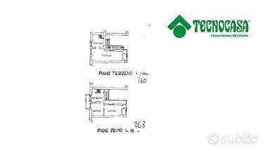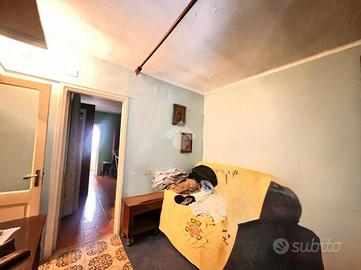 L'immobile, libero su due lati, si sviluppa su due livelli abitativi oltre al piano terra, dove si trovano due cantine. Al primo piano l'ingresso si apre direttamente sul soggiorno, luminoso e con accesso al balcone. Adiacente si trova una cucina semiabitabile, mentre un bagno finestrato completa il piano. Al livello superiore si sviluppa la zona notte, composta da tre camere da letto, una delle quali con affaccio su un secondo balcone, e da un secondo bagno.