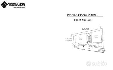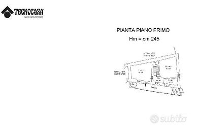 L'ingresso al primo piano è direttamente nella cucina abitabile che rimane luminosa e ariosa grazie alla presenza di un balcone. Il salotto ed un servizio igienico finestrato completano il piano.